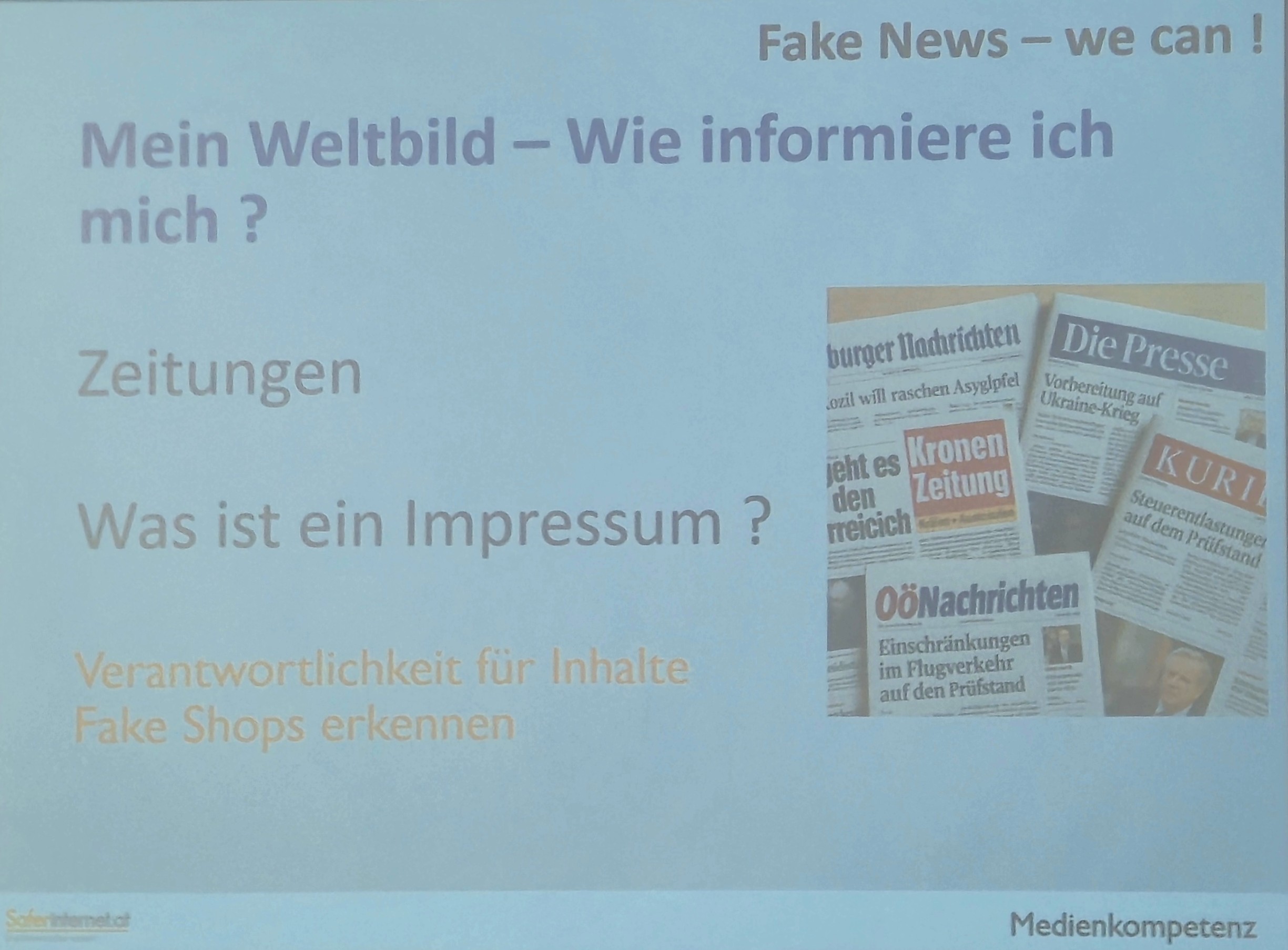 Am Dienstag, den 24.02.2026, nahm die Klasse 2EBA im AIM‑Unterricht an einem Workshop mit dem Titel „Fake News, we can! – Falschmeldungen im Internet erkennen“ teil. Unter der Leitung von Saferinternet‑Expertin Mag. Aline Schrader setzten sich die Schülerinnen und Schüler intensiv mit dem Thema auseinander.