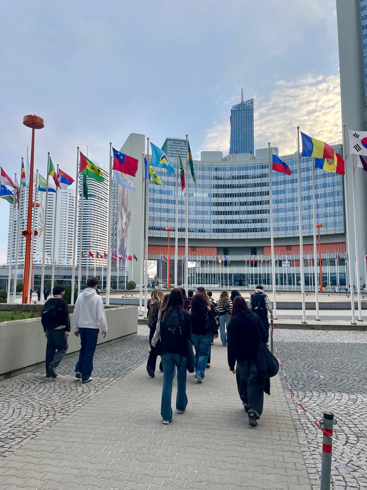 Gemeinsam mit Prof. Brehovsky und Prof. Schubach besuchten die 5 MA und IMK sowie 3 Schüler:innen aus der 5 TDM am Mittwoch Nachmittag die UNO in Wien. Nicht nur, dass wir uns auf internationalen Boden befanden, sondern auch die (indirekten) Begegnungen mit Menschen vieler Nationen führte uns vor Augen, wie wertvoll und unverzichtbar internationales Engagement und Handeln sein kann.