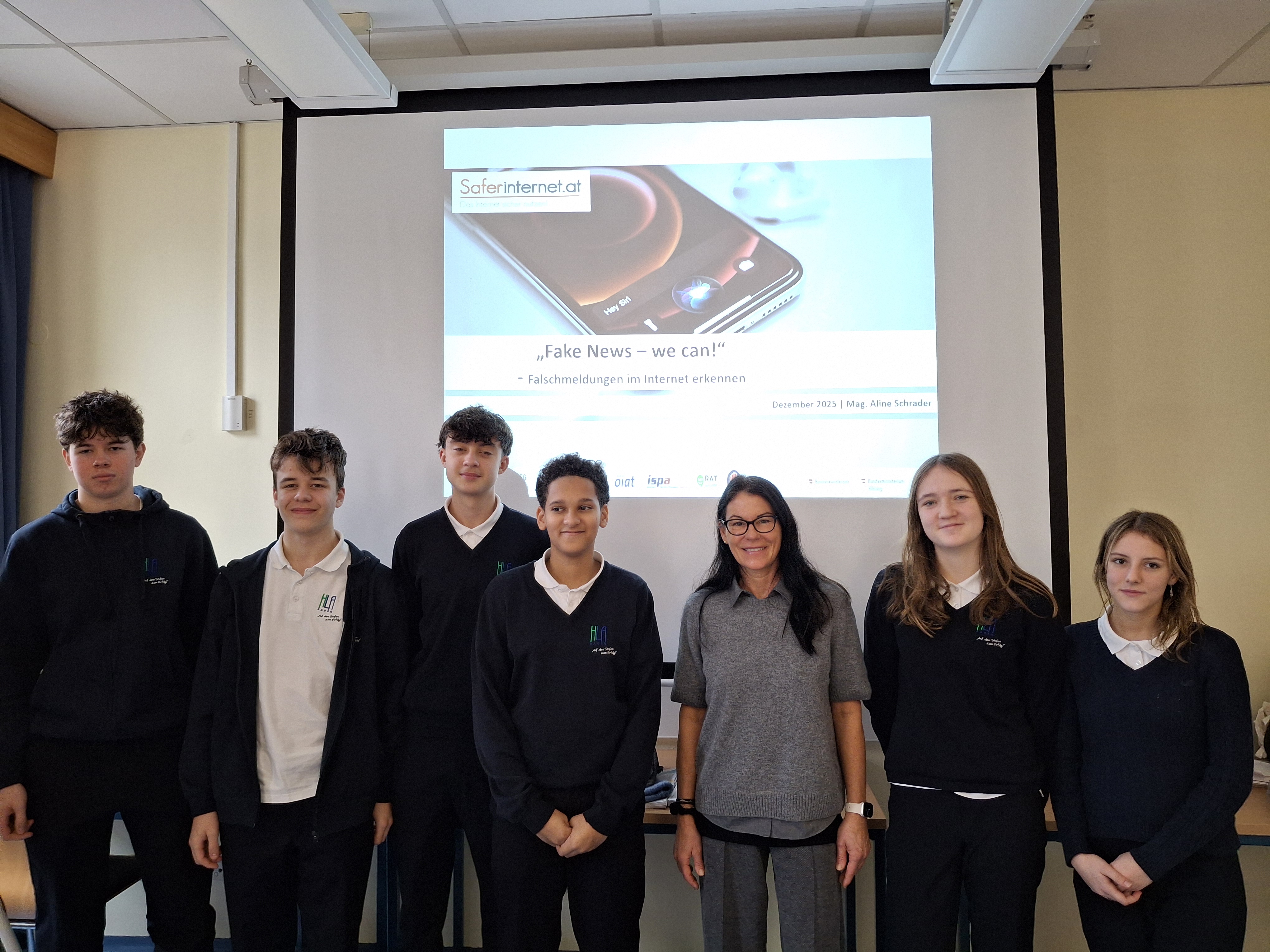 Am Donnerstag, den 09.12.2025, nahm die Klasse 2MMA im Rahmen des AIM Unterrichts von Frau Prof. Leiss und Reichart an einem spannenden Workshop mit dem Titel „Fake News, we can! – Falschmeldungen im Internet erkennen“ teil. Unter der Leitung von der Saferinternet-Vortragenden Frau Mag. Aline Schrader lernten die Schülerinnen und Schüler nicht nur theoretische Grundlagen, sondern arbeiteten auch aktiv mit praktischen Beispielen aus sozialen Medien und Nachrichtenportalen.