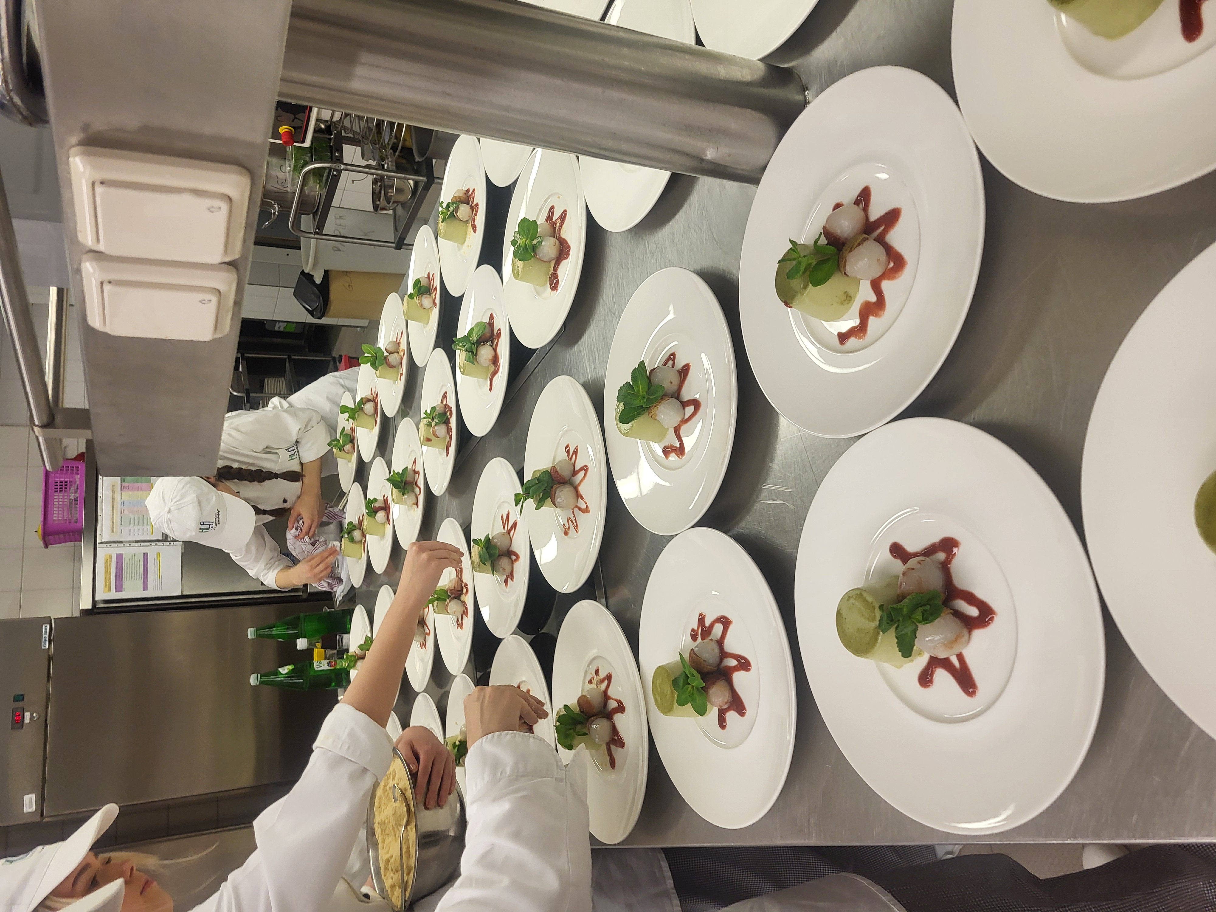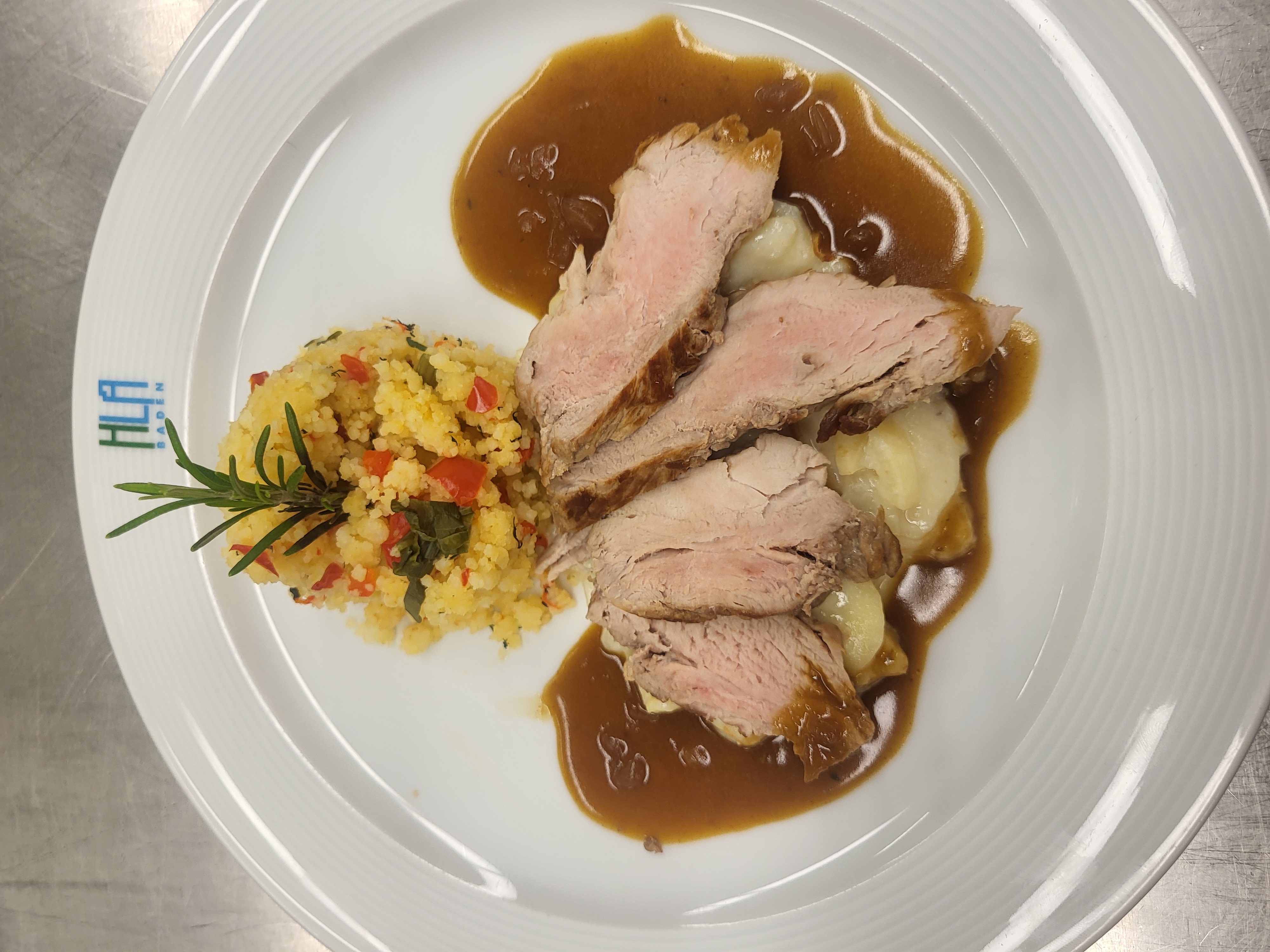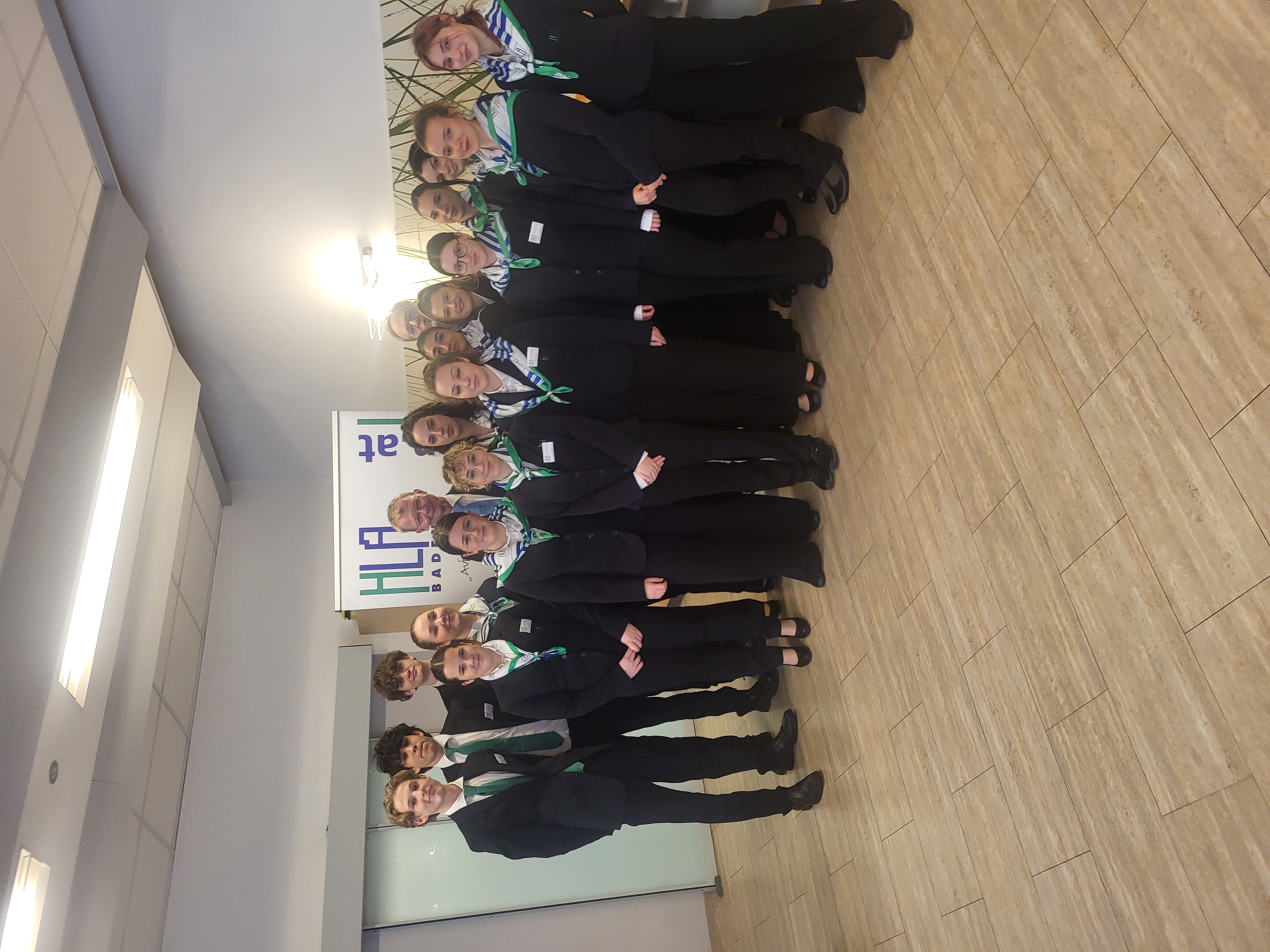 Auch der Hausherr der HLA-Baden, Herr Direktor Mag. Bernhard Klima begrüßte die Gäste, unter anderem auch SQM Eva Hiegersberger BEd mit Begleitung und zeigte sich sehr zufrieden. Kredenzt wurde unter anderem Carpaccio vom Kohlrabi mit Rohschinken, Klare Hühnersuppe mit Zitronengras, Birne und Glasnudeln, rosa gebratenes Schweinsfilet auf cremigen Pastinaken und Vanillecouscous, sowie als Dessert Grüntee Panna cotta mit Sesmkrokant und Litschi. Die hochkarätige Gästebetreuung, durchgeführt von der 4MB, wurde von Weinen aus dem Hause Aumann aus Tribuswinkel begleitet.