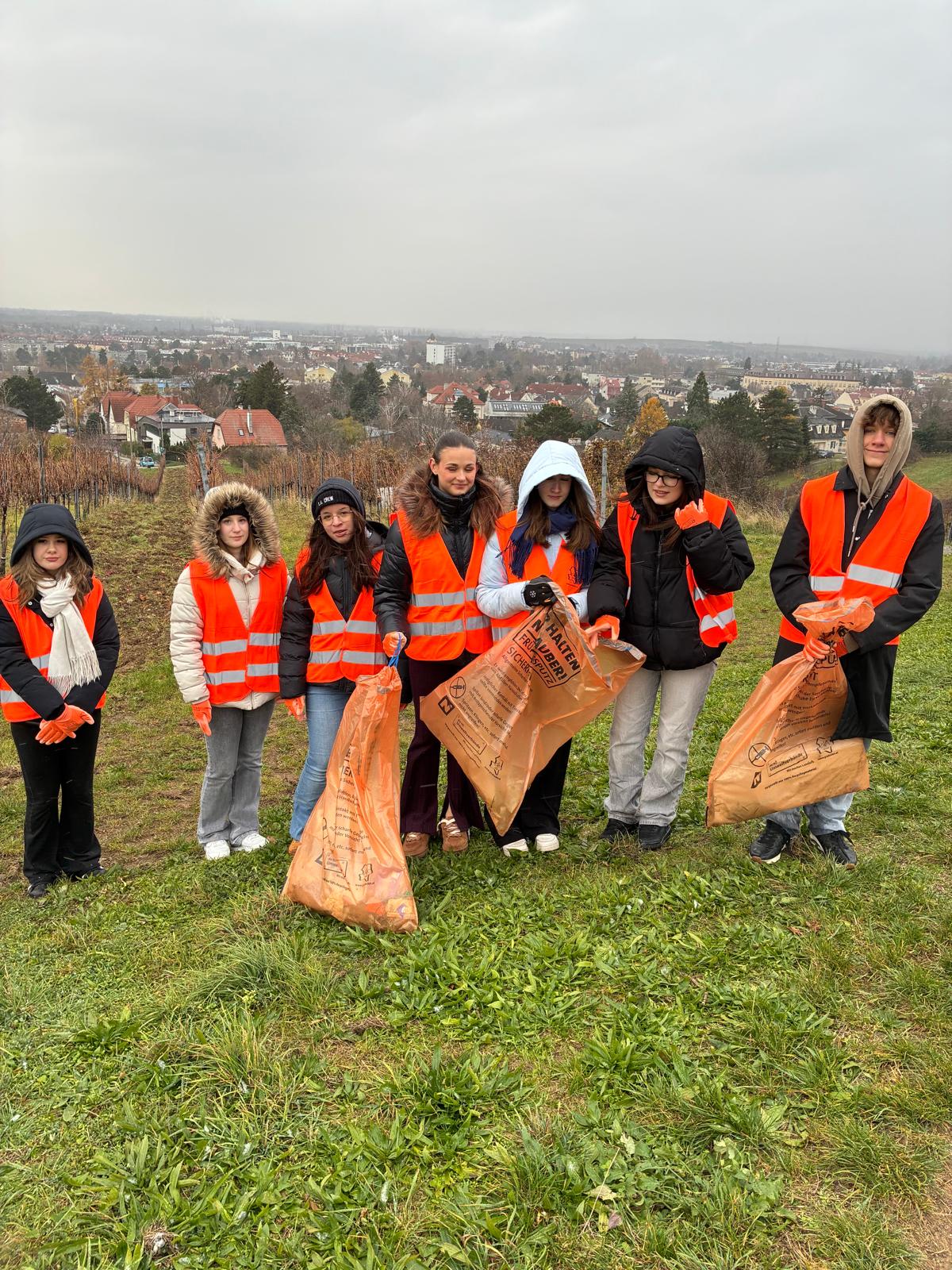 Trotz winterlicher Temperaturen und kaltem Wetter hat die Klasse 1EBB gezeigt, was Engagement bedeutet: Die Schüler:innen waren in Gruppen entlang des Wasserleitungswegs Richtung Pfaffstätten unterwegs, um die Weinberge, Wege und Hecken von Müll zu befreien. Gesammelt wurde alles, was nicht in die Natur gehört – von Gläsern und Dosen über Plastikmüll bis hin zu zahllosen Zigarettenkippen.