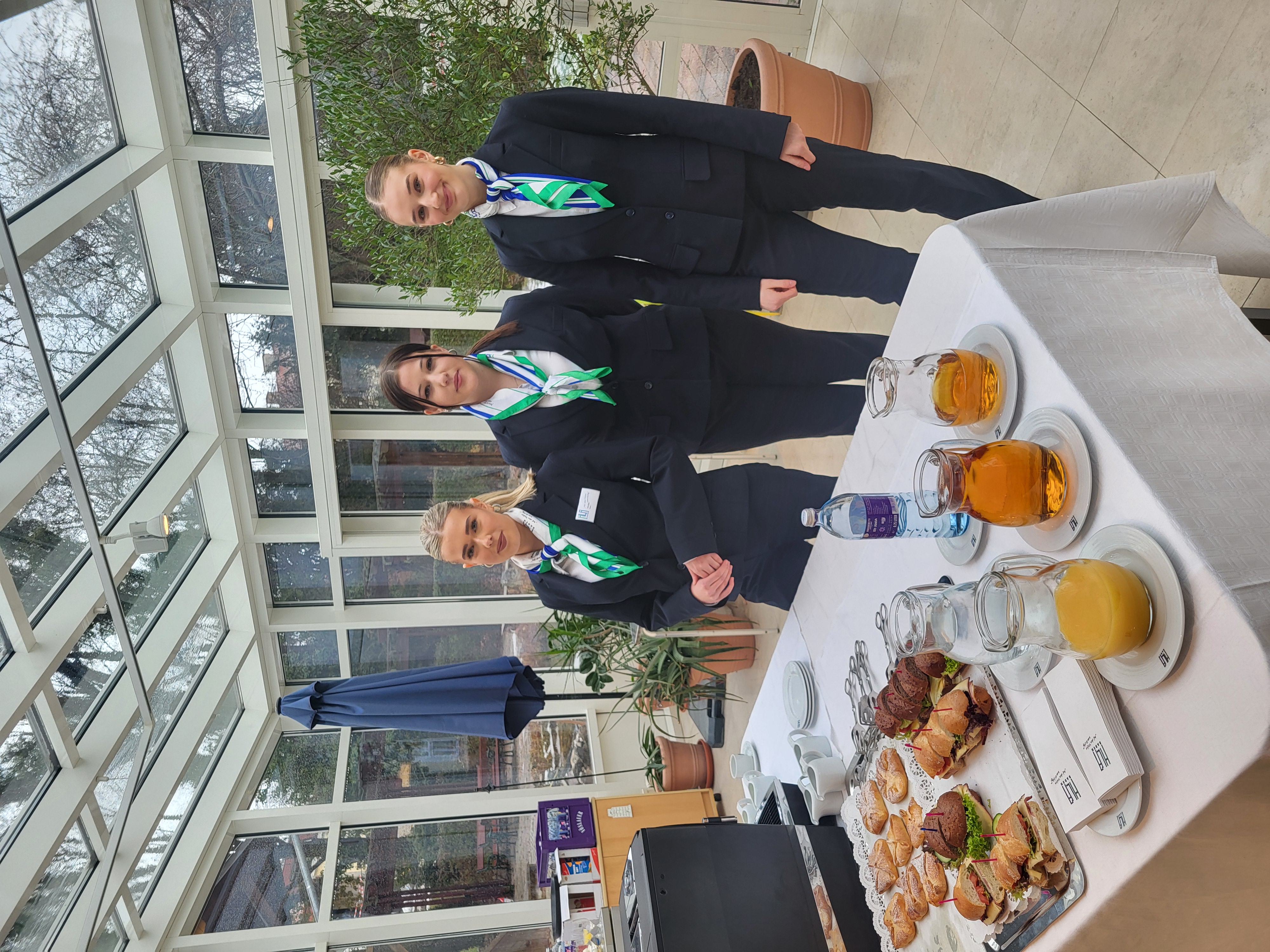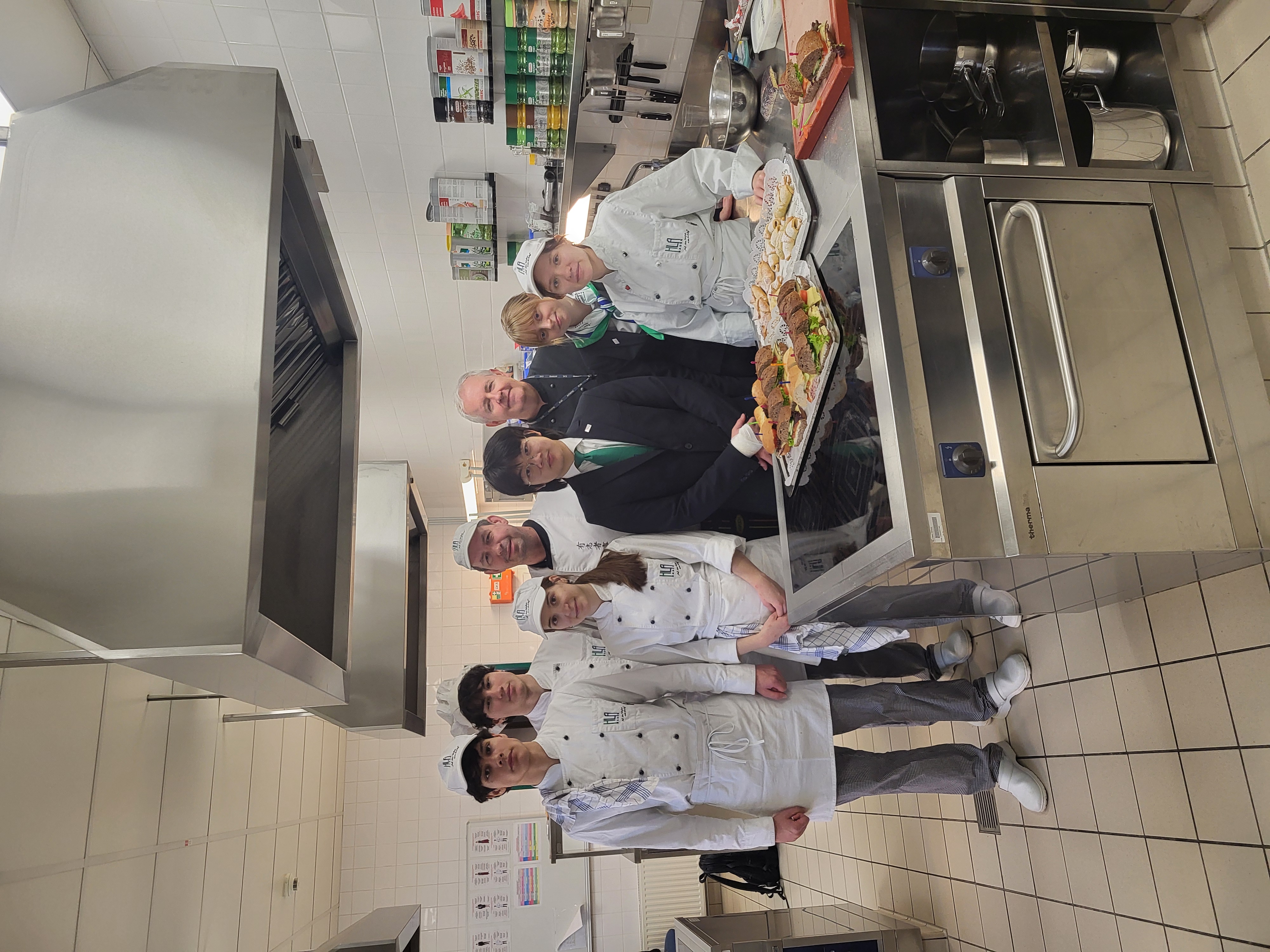 Für den Empfang, die Betreuung und die kulinarische Umrahmung für die Aussteller waren die Schüler:innen der 3 TDM mit Dipl.-Päd. Manfred Schwarzer, Walter Ehrenhöfer, BEd und Dipl.-Päd. Paul Chapman zuständig.