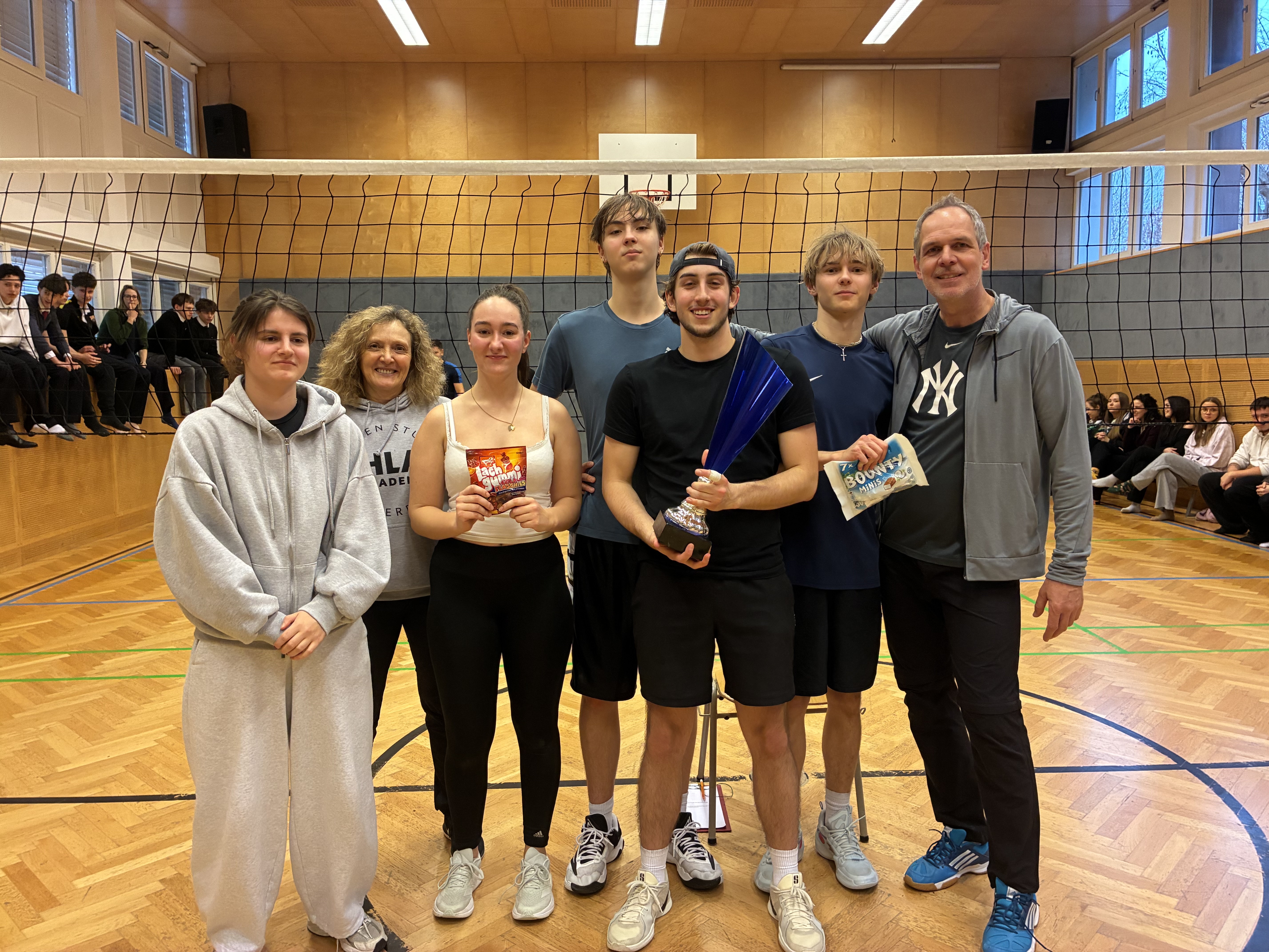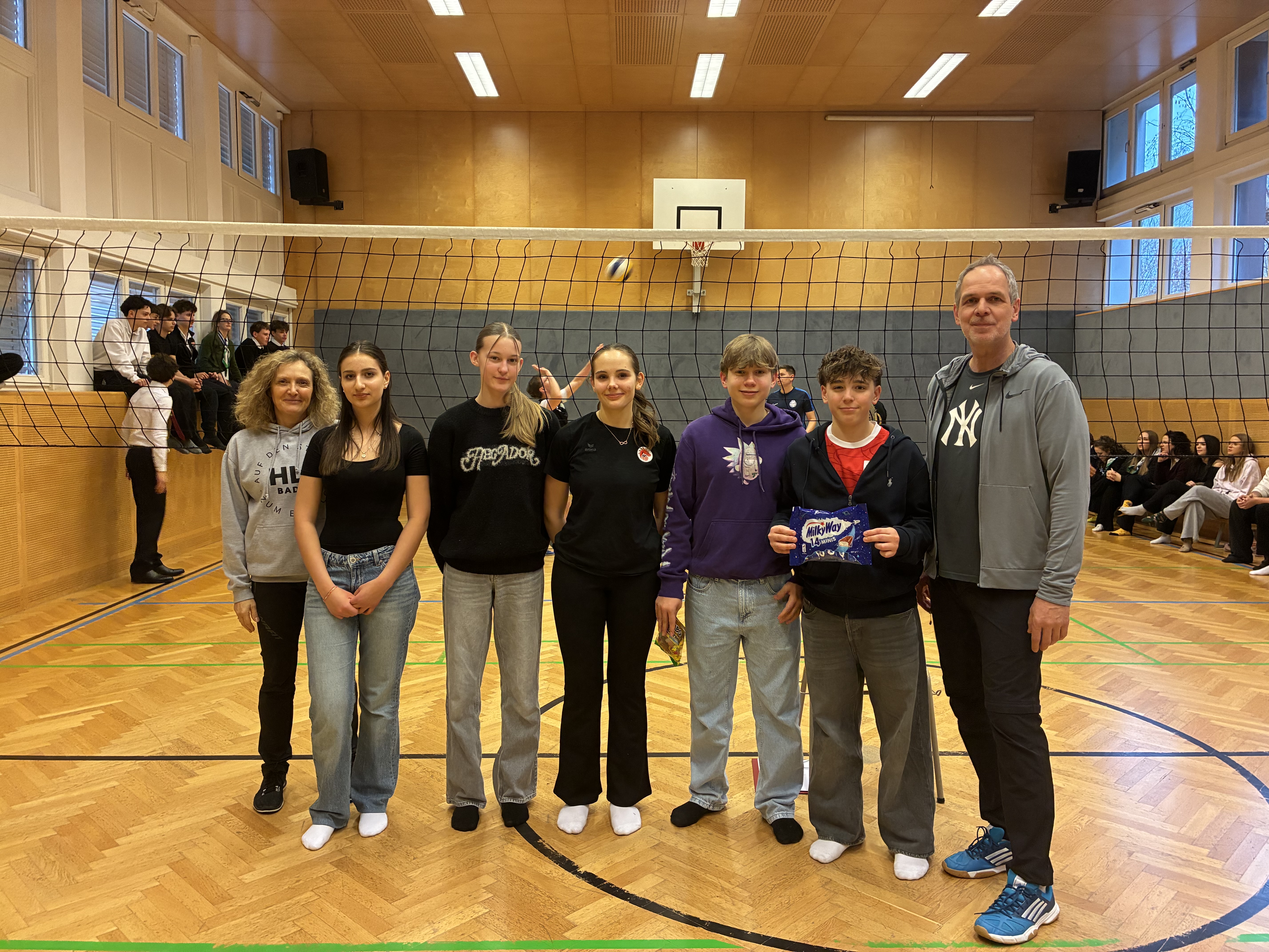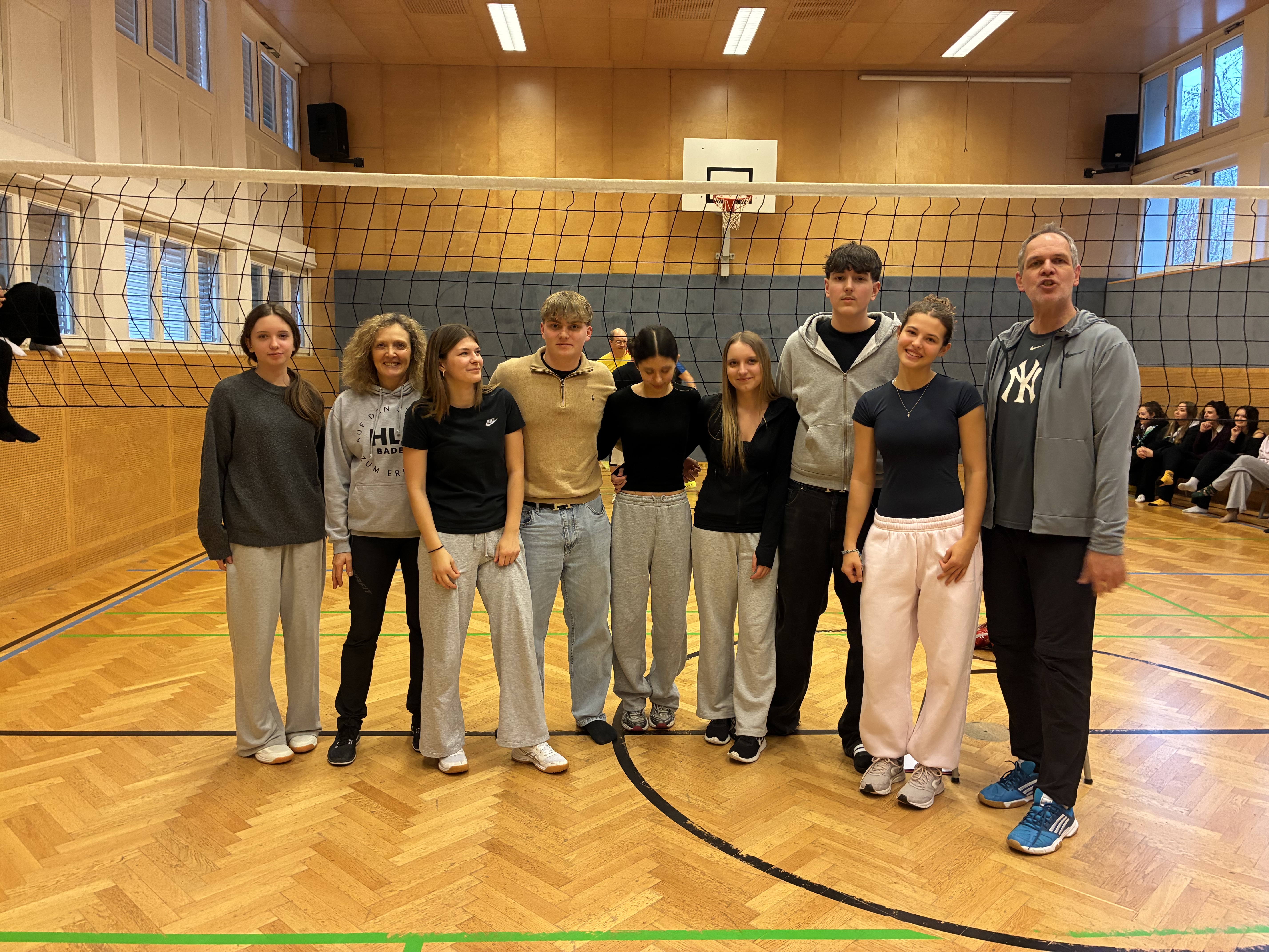 Den Abschluss bildete ein attraktives Showmatch zwischen der Siegermannschaft der 4IMK und dem Lehrerteam. Auch hier wurde Volleyball auf Topniveau geboten. Während der erste Satz an die Lehrer:innen ging, konnten die Schüler:innen die beiden folgenden Sätze für sich entscheiden und damit das Duell insgesamt gewinnen.